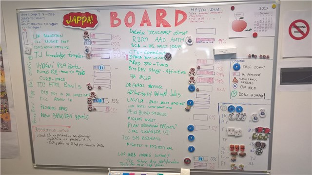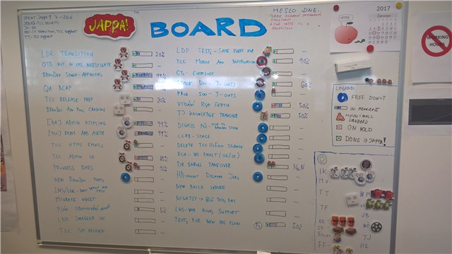Došlo ke změně a tabule již není orientovaná na produkt, ale na team. Na Jappa Team. Questy na této tabuli již dospěly do rozměrů dalece přesahujících hranice pouhého projektu. Některé questy jsou již součástí lifestyle Jappa.
